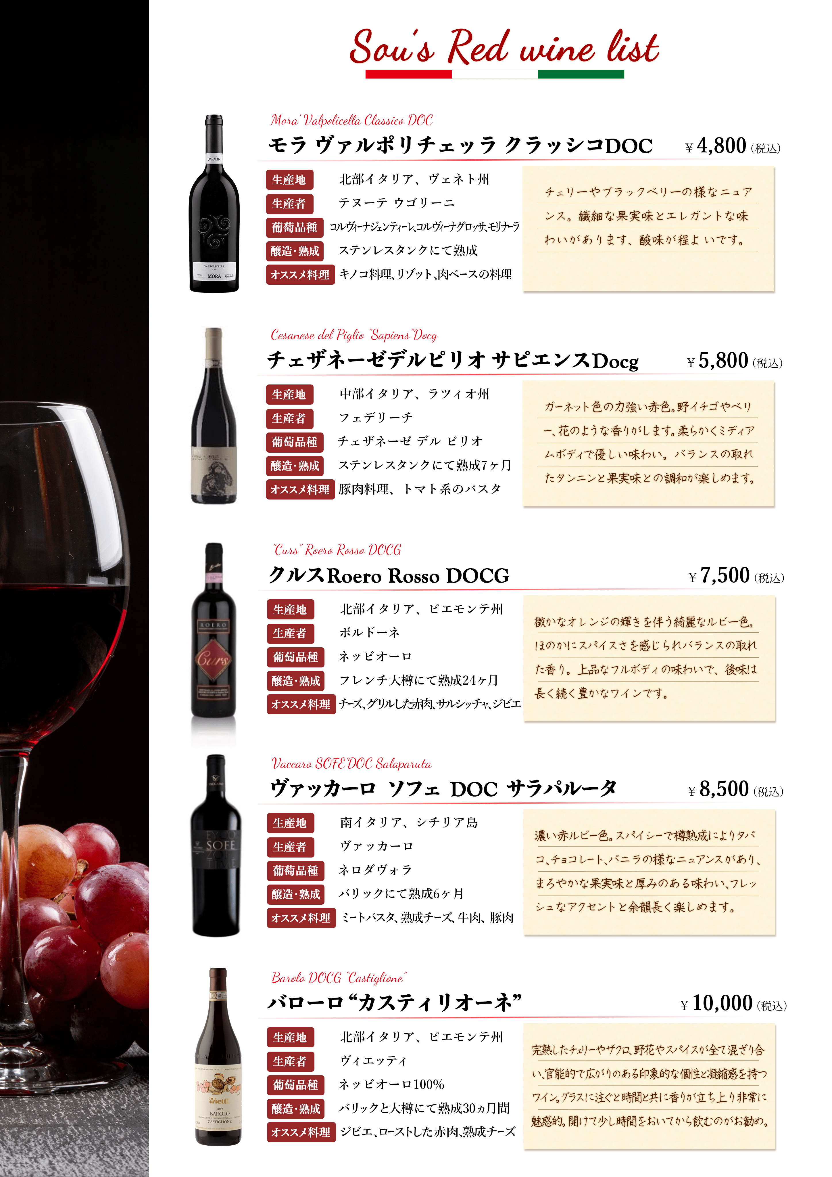 ソムリエ認定をもつシェフが、直々に当店自慢のワインを選定させていただきました。